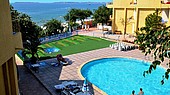 - бассейны: на территории лагеря 2 плавательных бассейна, оборудованных лежаками и зонтиками. Время работы: 10:00-14:00 и 16:00-18:00.