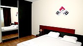 Стандартные номера (29 кв.м). Максимально еразмещение - 2+1/3 чел. Апартаменты с одной кроватью (83 кв.м). Максимальное размешение -2+1/3 чел. Апартаменты с двумя кроватями (96 кв.м). Максимальное размешение -4+1/5 чел. Во всех номерах: душ, ванная комната, туалет, бесплатные туалетные принадлежности, полотенца, фен, спутниковое ТВ, кондиционер, холодильник, гладильные принадлежности.